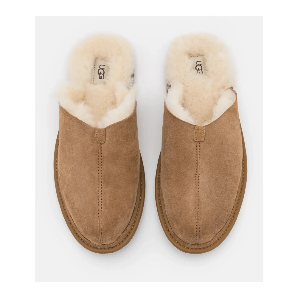 Våre favoritt hjemmesko er perfekte for late helger og koselige kvelder hjemme. Den myke ullfôret og enkle slip-on formen gjør dem til et must-have i enhver manns garderobe. Den tynne gummisålen er ideell for innendørs bruk, og vi anbefaler å gå barfot for å oppleve ullens varme, temperaturregulerende og fukttransporterende egenskaper fullt ut. Overdelen er laget av semsket skinn, mens 17mm Uggpure™ resirkulert ull vamp-fôr eller 17mm Uggplush™ 80% resirkulert ull, 20% lyocell vamp-fôr og 17mm saueskinn innersåle gir ultimate komfort. Stoffdetaljer: Polyesterbinding eller tekstilbinding laget av 100% resirkulerte polyesterfibre.
