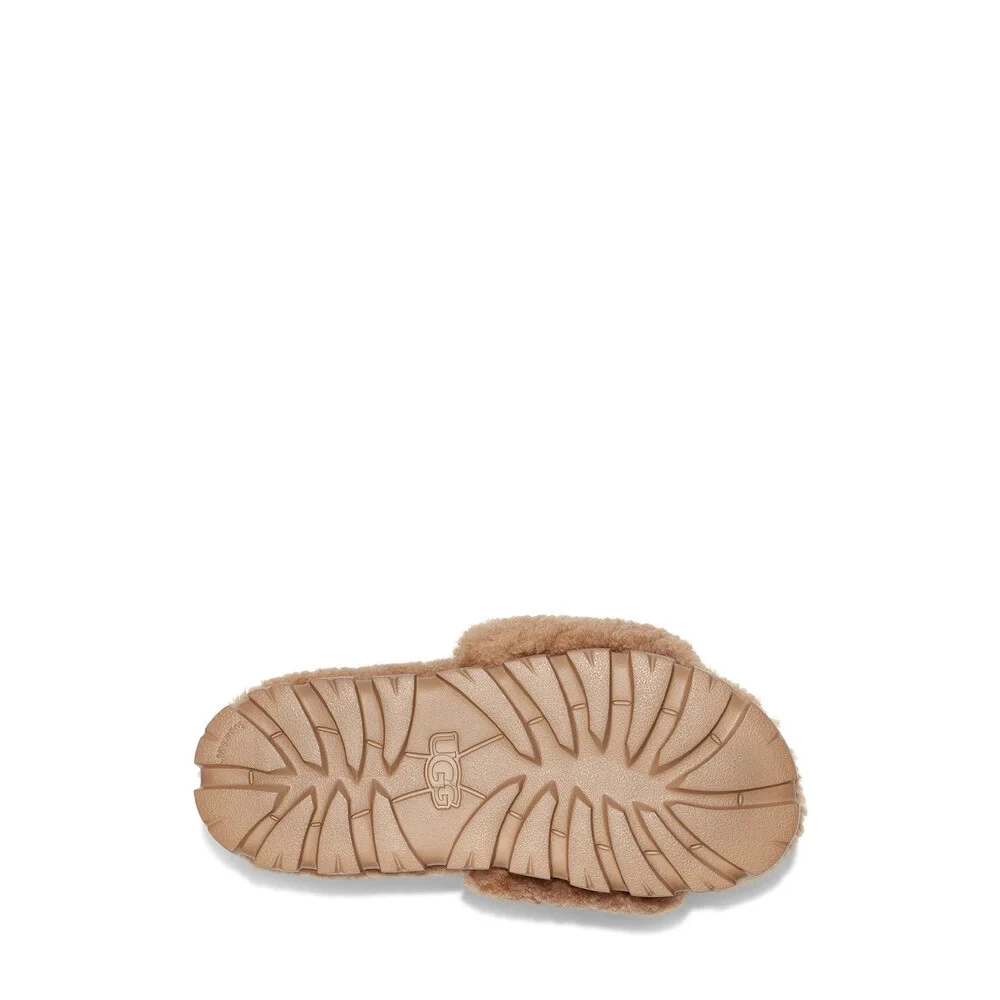 Trinn inn i komfort med disse UGG sliders for kvinner. Den 10mm krøllete saueskinnsøvre og UGGplush vampfôr gir en koselig følelse, mens SugarSole EVA-yttersålen sikrer holdbarhet. UGG-logoen rivet legger til en touch av stil. Vær oppmerksom på at dette produktet inneholder ekte pels fra sau eller lam som er kunstig farget og behandlet.