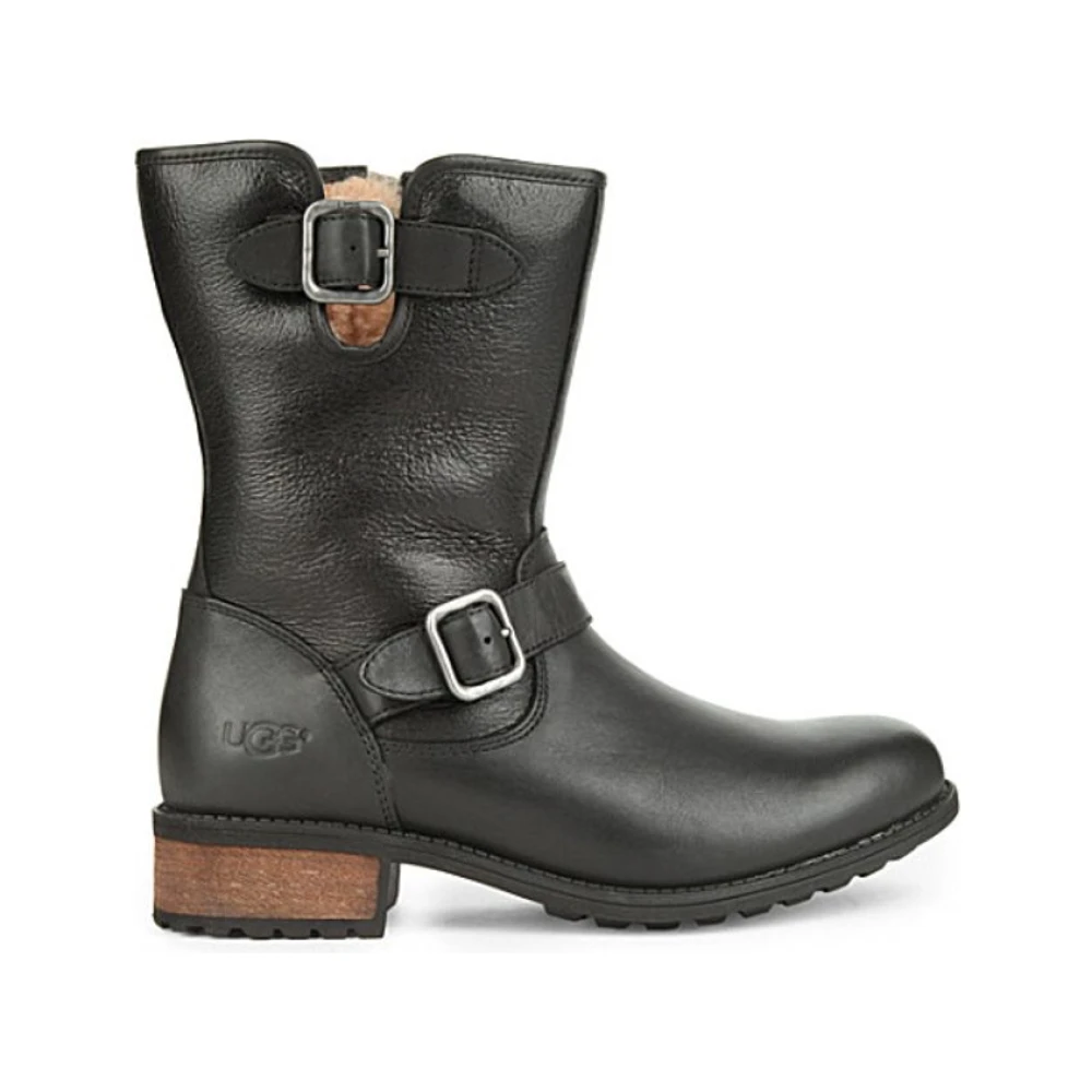 Gå ut i stil med UGG Chaney-støvlene. Disse høye støvlene er laget av 100% skinn og har gull-detaljer og en deilig fôr. Produktstil-ID-en er 1006042, og vi anbefaler å velge en mindre størrelse hvis du er i tvil.