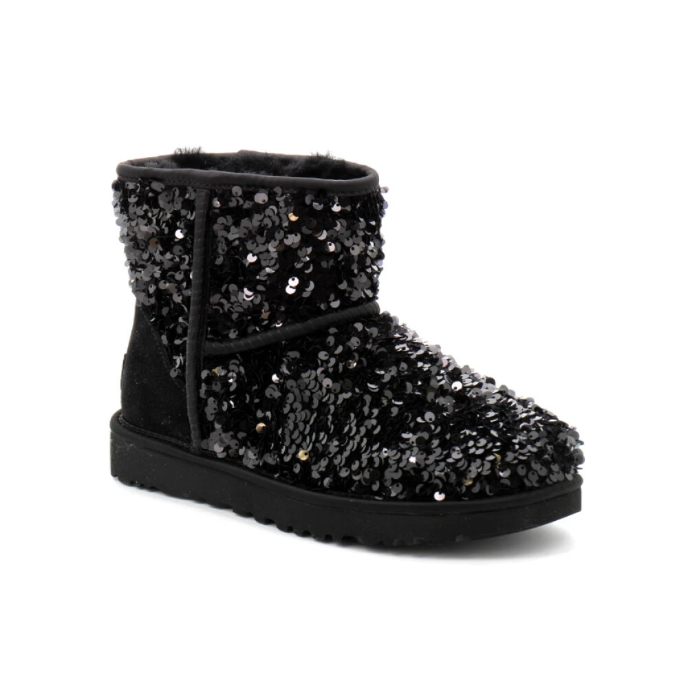 Hold føttene dine varme og stilige denne vinteren med UGGs Classic Mini Boots. Disse støvlene er perfekte for enhver kvinne som leter etter en behagelig og moteriktig vinterstøvel. Overdelen er laget av stoff og innersålen er laget av ull fra sauer. Produktstil-ID er 1130602-BLK.