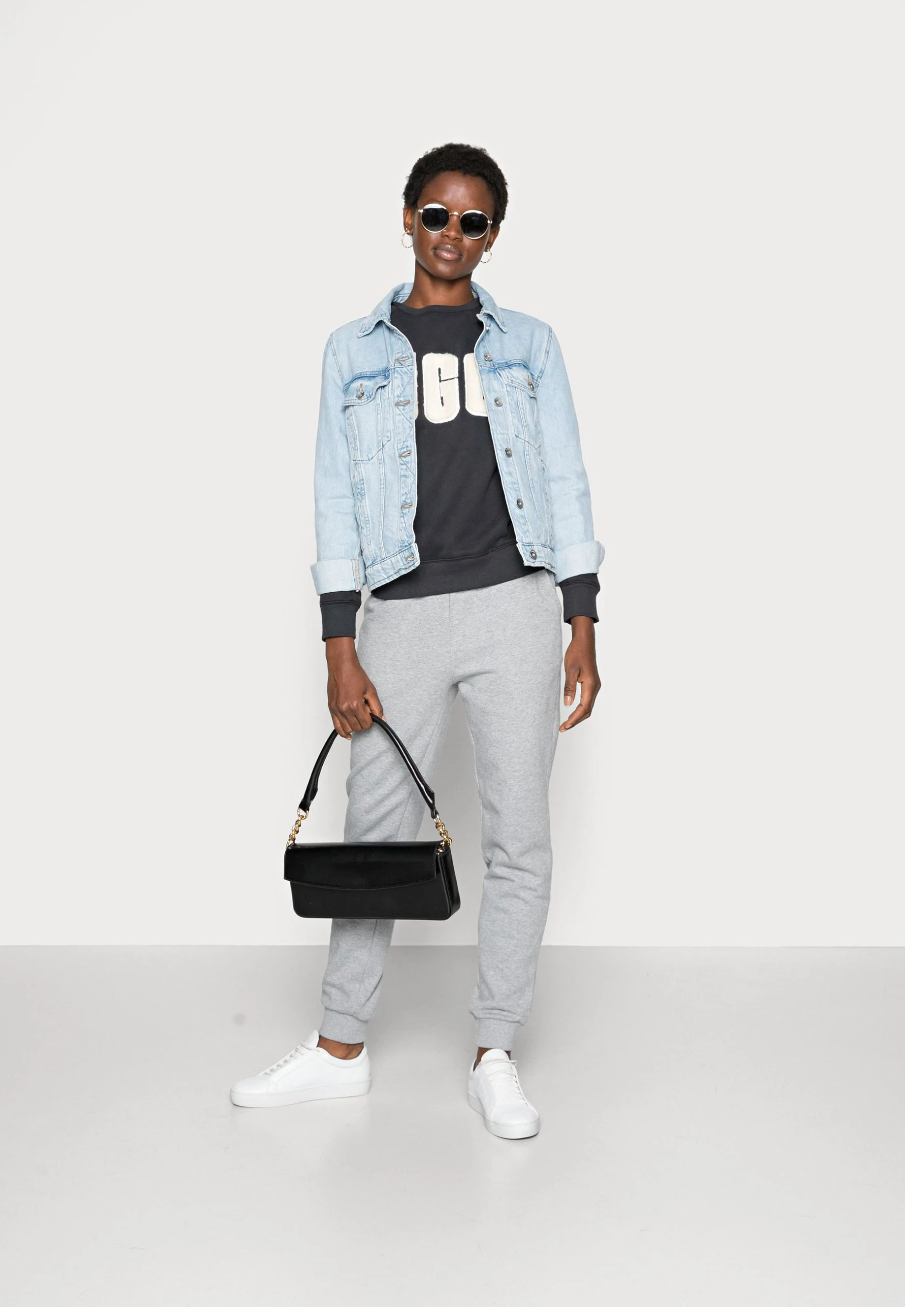Ugg Madeline Fuzzy Logo Crewneck – Sweatshirt – Black / Cream