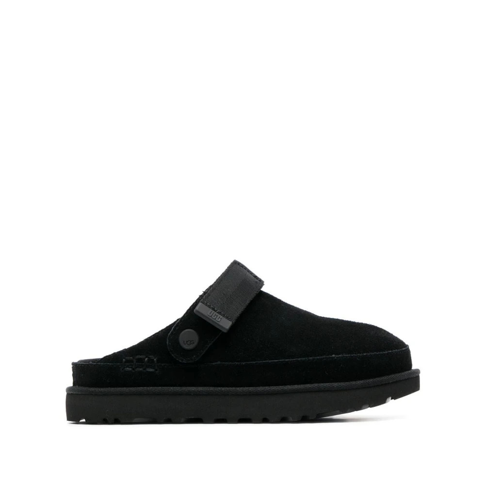 Trinn inn i stil og komfort med disse UGG Australia Flat Shoes i svart. Laget med høykvalitets kalveskinn, disse slip-on tøflene har en justerbar touch-stropp lukking og en flatform såle for ekstra høyde. Den runde tåen og logo patchen på siden legger til et snev av sofistikasjon til dette moderne designet. Perfekt for enhver motebevisst kvinnes garderobe.